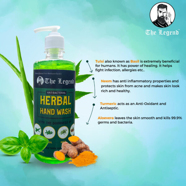 Our hands are hotbed of germs. Keep your family in safe hands with The Legend Herbal Handwash that provides effective cleansing and protects you and your family from a million germs. The Legend Antibacterial Herbal Hand Wash is made with the power of Herbal essence. It not only cleans your hands but also fights germs with an extra dose of sensitivity for your skin.